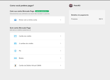 Pix Boleto Cartão Virtual Caixa MercadoPago PicPay PayPal